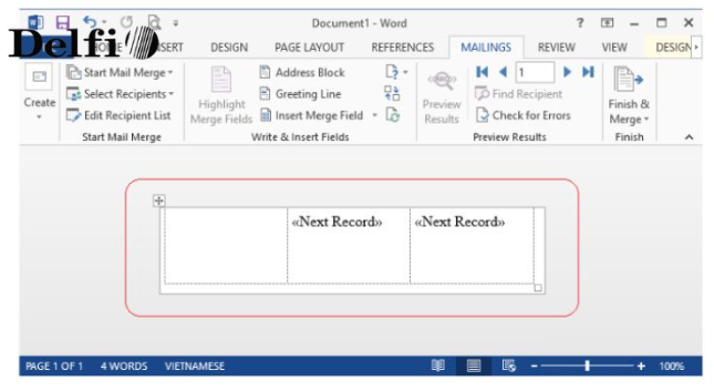 Bước tiếp theo là đưa dữ liệu từ file Excel (đã được tạo ở bước 2) vào file Word. Thực hiện các bước sau: