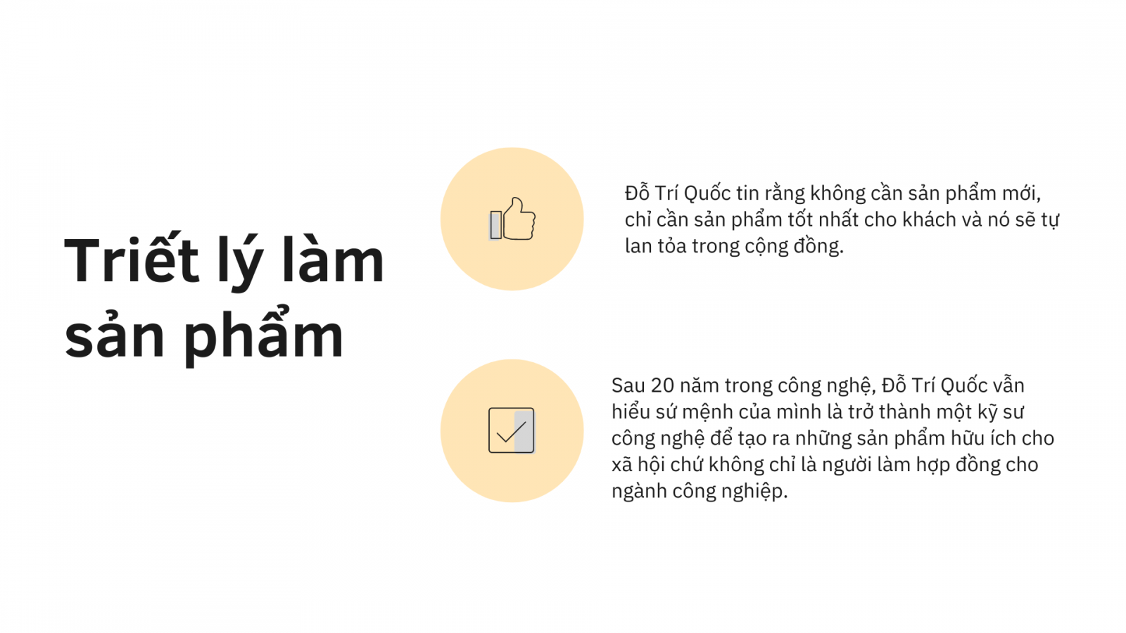 Google luôn là ước mơ của Đỗ Trí Quốc và anh muốn hiện thực hóa ước mơ này tại Việt Nam. Ông luôn tin chắc rằng nếu thế giới có những sản phẩm công nghệ tiên tiến như Google hay Facebook thì tại sao Việt Nam lại không có những sản phẩm tương tự? Đây chính là lý do sau nhiều năm đắn đo, Đỗ Trí Quốc quyết định tạo ra một sản phẩm trong lĩnh vực thực phẩm có tầm ảnh hưởng như Google.