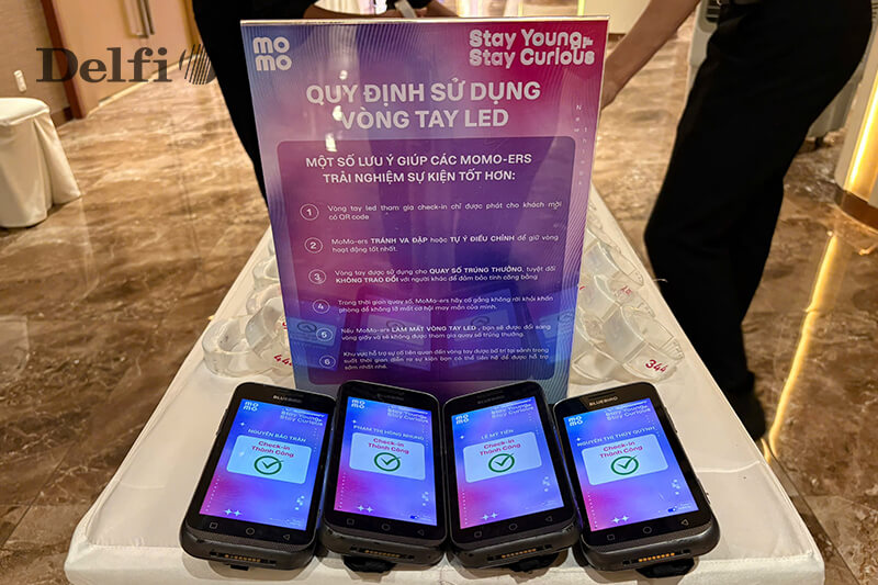 Một sự kiện quy mô lớn như MoMo New Year Party 2025 đòi hỏi một hệ thống check-in nhanh chóng, chính xác và chuyên nghiệp. Với giải pháp check-in QR code do Delfi Technologies cung cấp, quá trình check-in diễn ra mượt mà, giúp khách mời tiết kiệm thời gian, hạn chế ùn tắc, nâng cao trải nghiệm tham dự sự kiện.