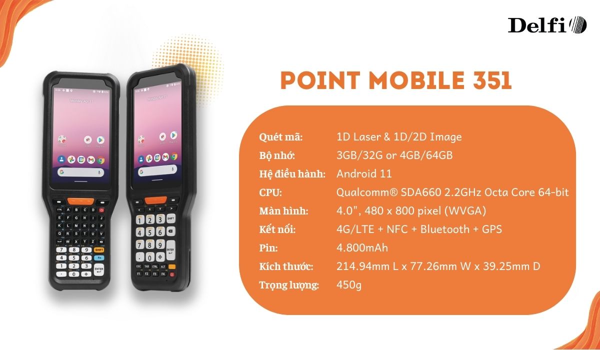 Thiết bị quét mã vạch PDA Qrcode Point Mobile PM351