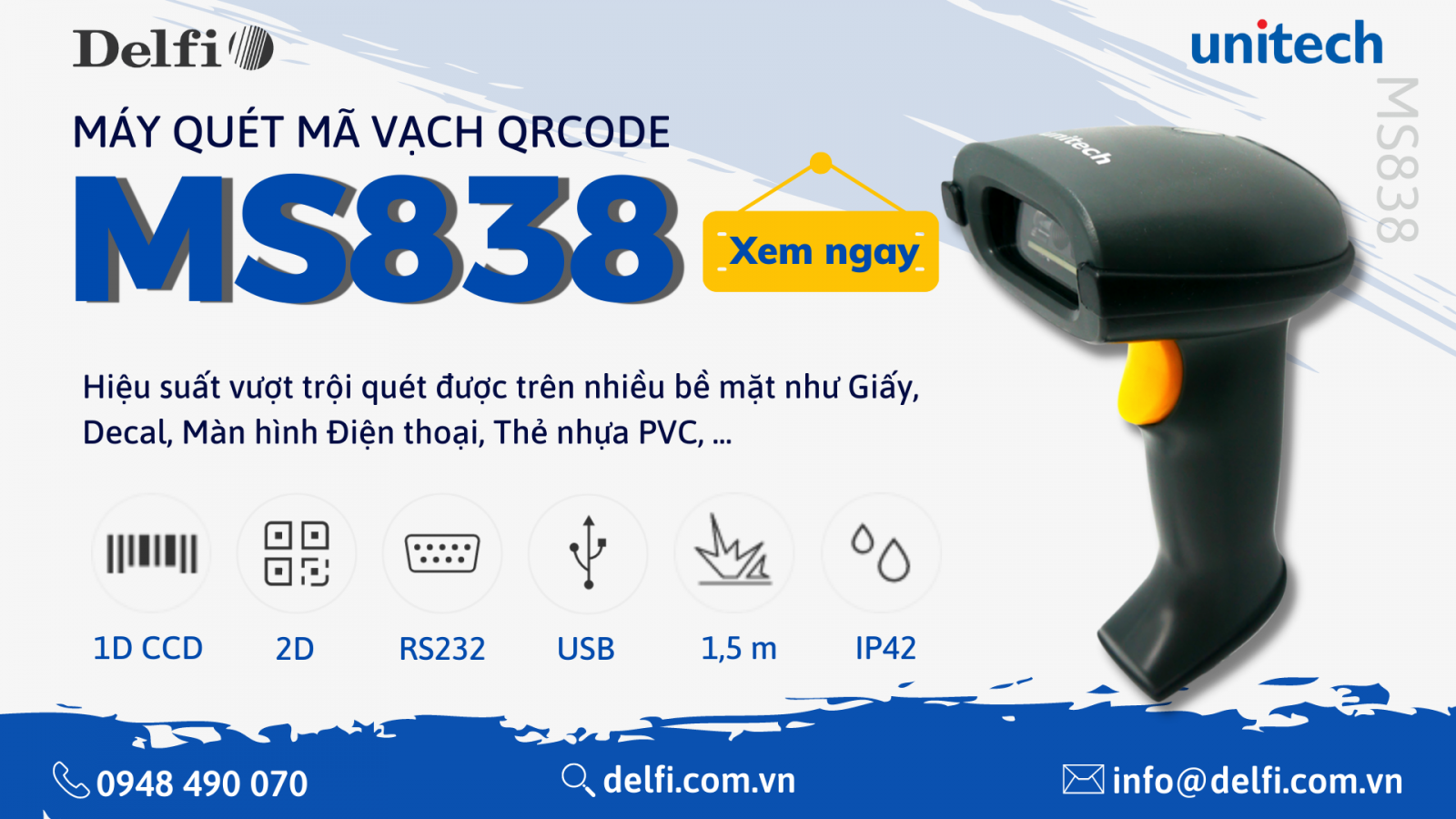 Hưởng ứng lễ hội “BLACK FRIDAY” cuối năm, Delfi mong muốn đem đến cho Quý khách hàng chương trình có “1-0-2” khi “Sale sập sàn” cho dòng Máy quét mã vạch Qrcode Unitech MS838, đây được xem như lời tri ân mà Chúng tôi muốn gửi đến cho Quý Khách hàng đã cùng đồng hành trong một năm vừa qua, và cũng là dịp để Delfi có cơ hội phục vụ và hợp tác với các Khách hàng cũng như Đối tác mới trong thời gian sắp đến