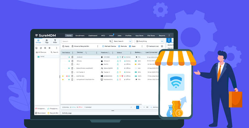 SureMDM giúp thiết lập, cấu hình và triển khai các thiết bị Android và Apple do doanh nghiệp sở hữu ngay từ khi mở hộp. Điều này không chỉ tiết kiệm thời gian mà còn đảm bảo rằng các thiết bị được tối ưu hóa cho môi trường làm việc ngay từ đầu.