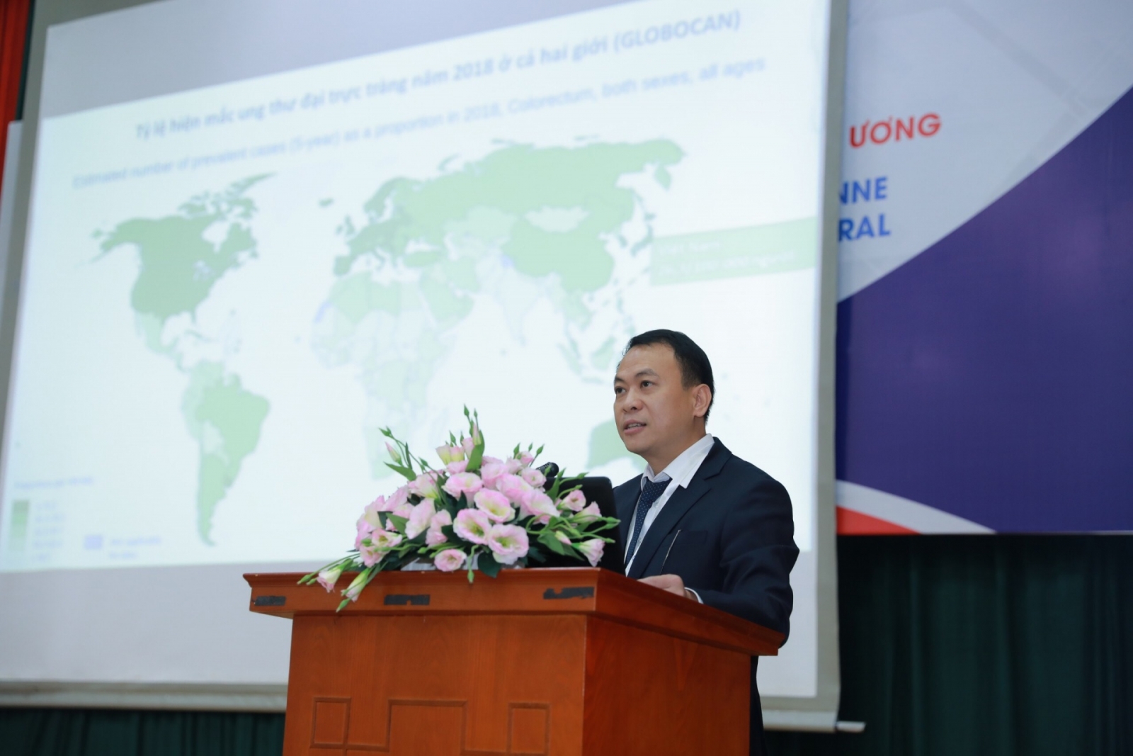 GS.TS.Trần Văn Thuấn, Thứ trưởng Bộ Y tế dự và phát biểu tại hội thảo – TS.BS Nguyễn Tiến Quang chia sẻ về “Cập nhật kiến thức về dịch tễ học ung thư đại trực tràng”