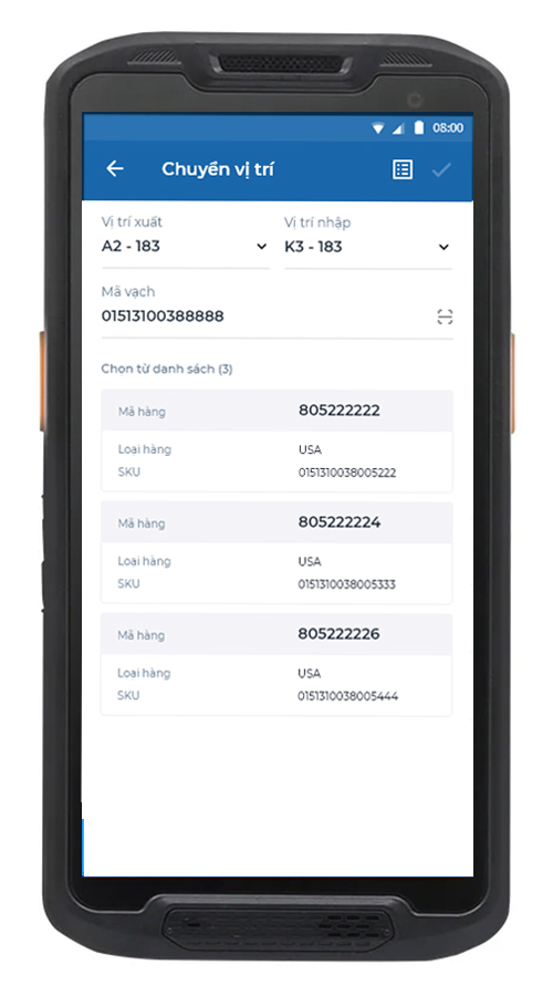 Kiểm kê kho hàng định kỳ hoặc theo yêu cầu của nhà quản lý. Nhân viên kho sử dụng thiết bị kiểm kho PDA để quét các mã hàng trong kho, phần mềm sẽ tự động cập nhật và thông báo số lượng hiện tại mà không cần thêm bất kỳ công đoạn nào khác.